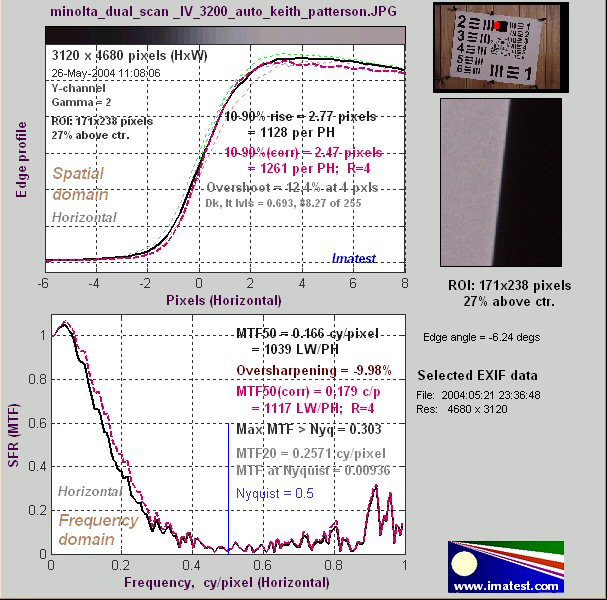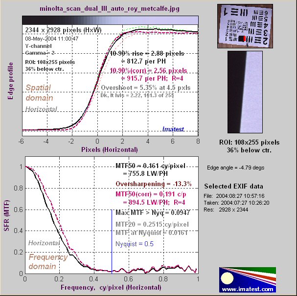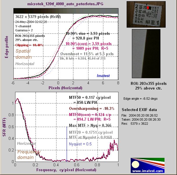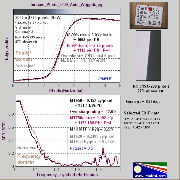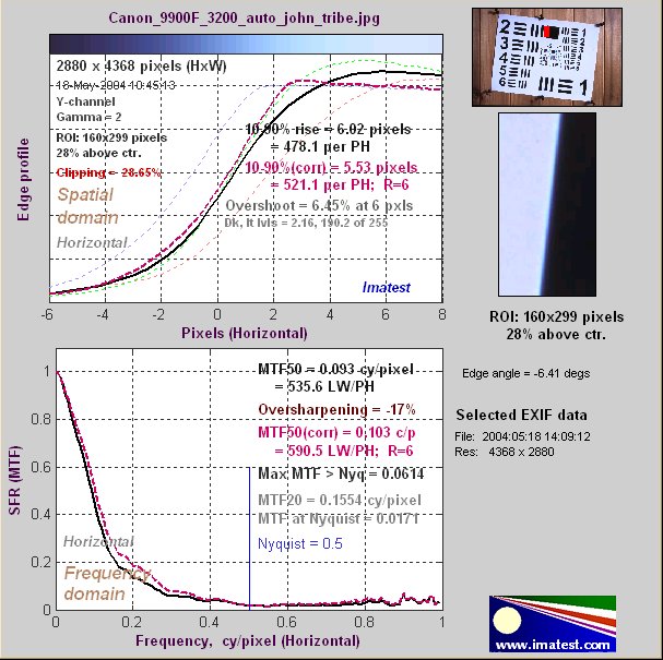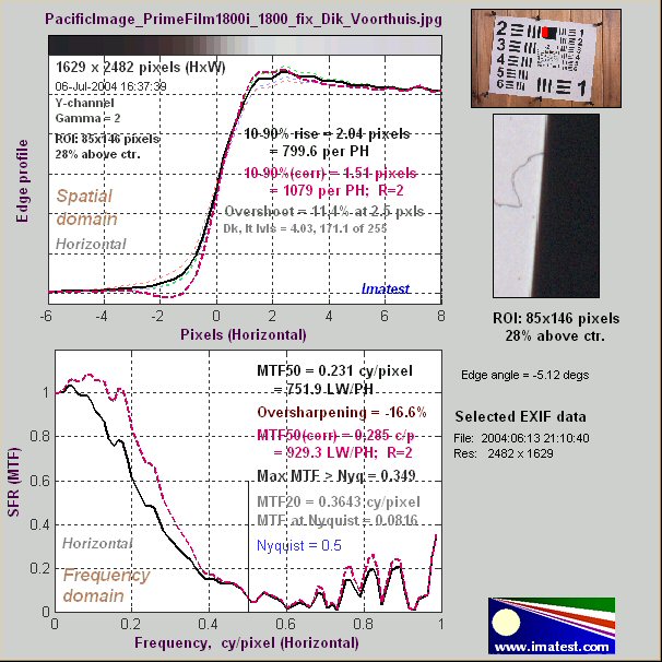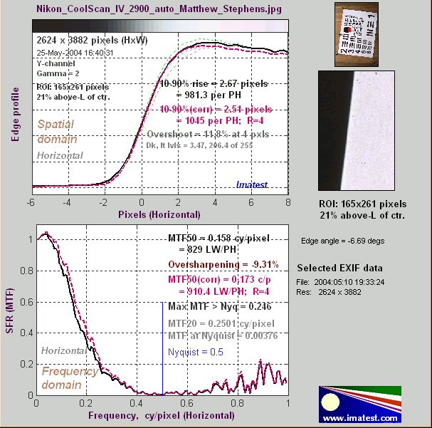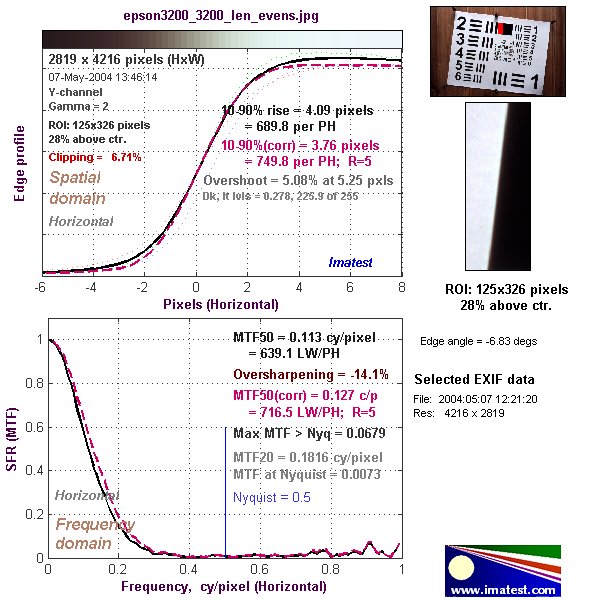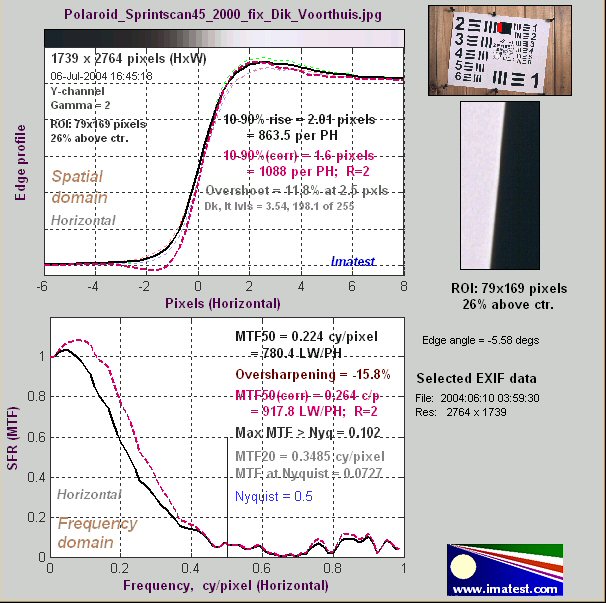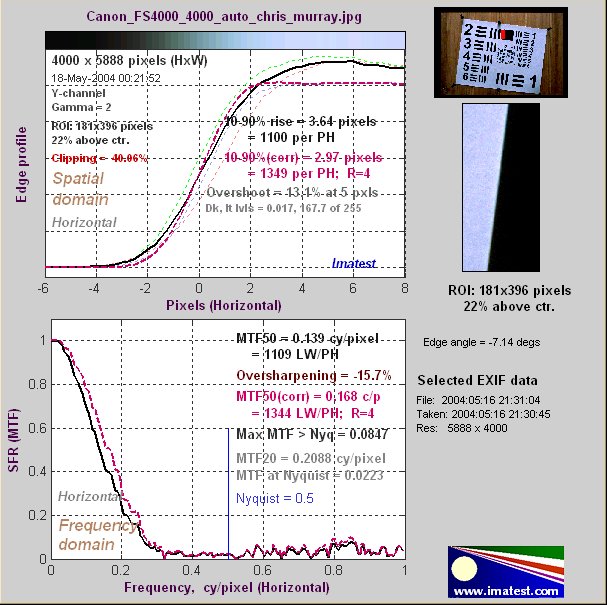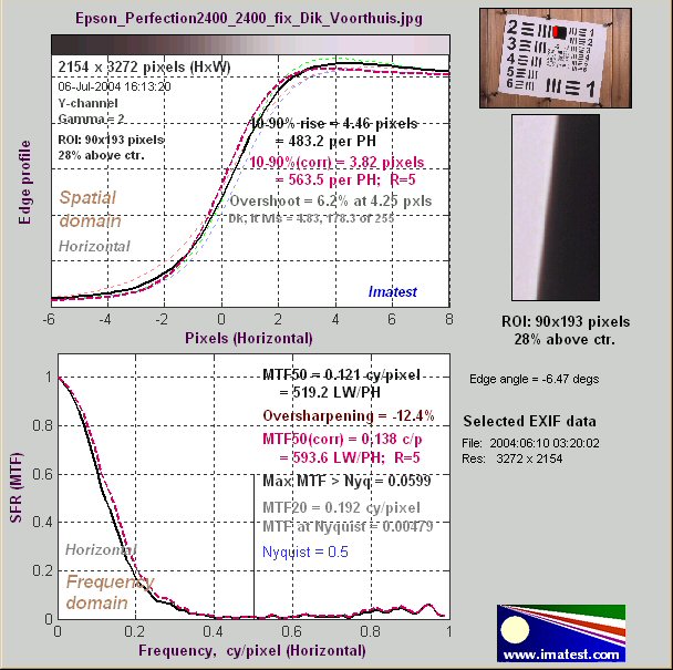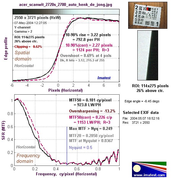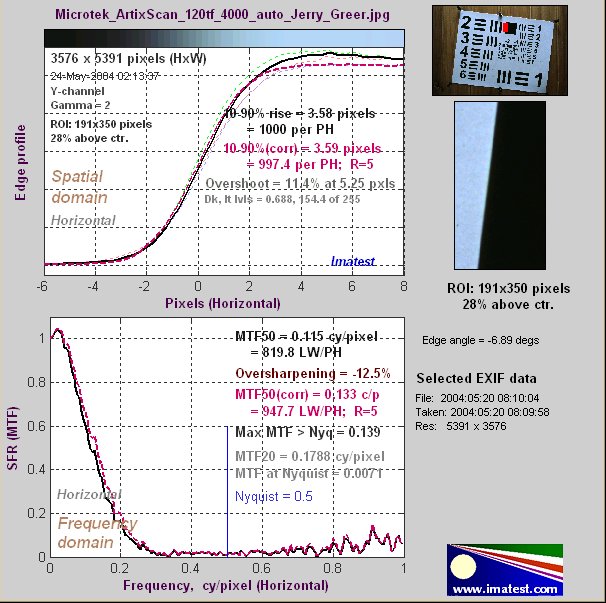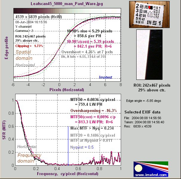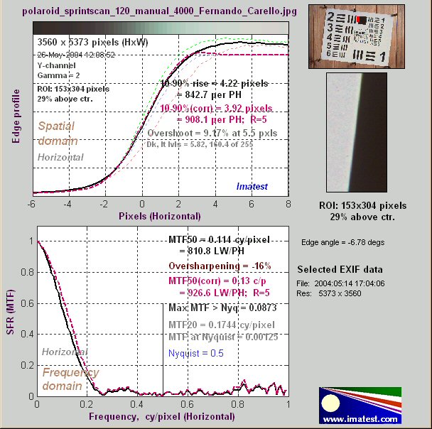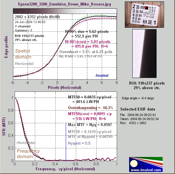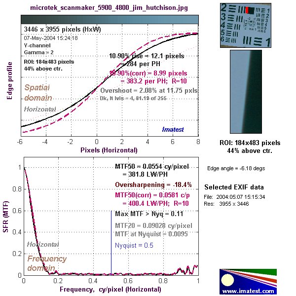 Note: The apparent sharper image is due to a larger target coming from a reflective scan. MTF values are accurate.