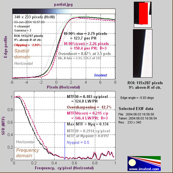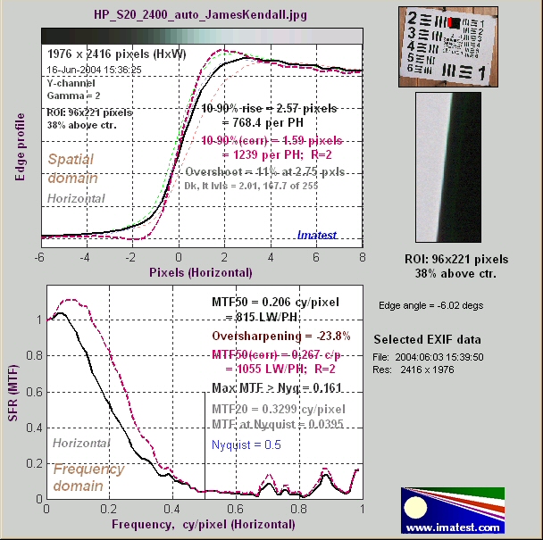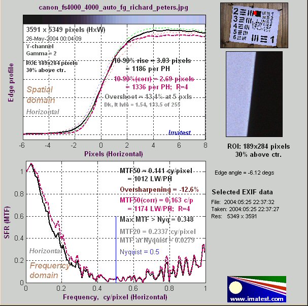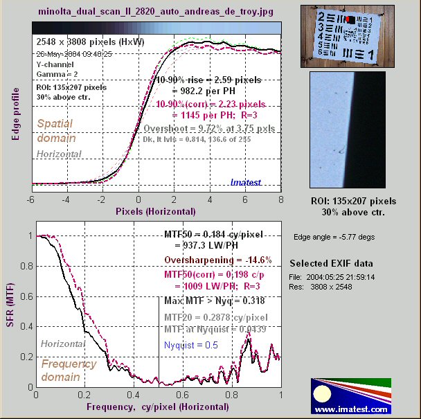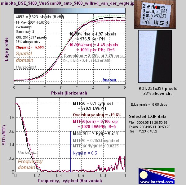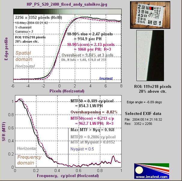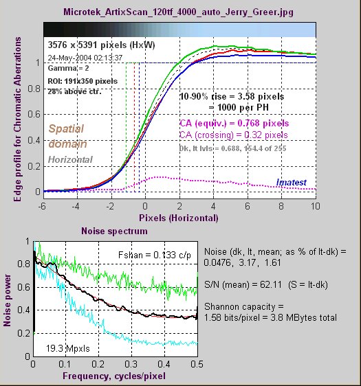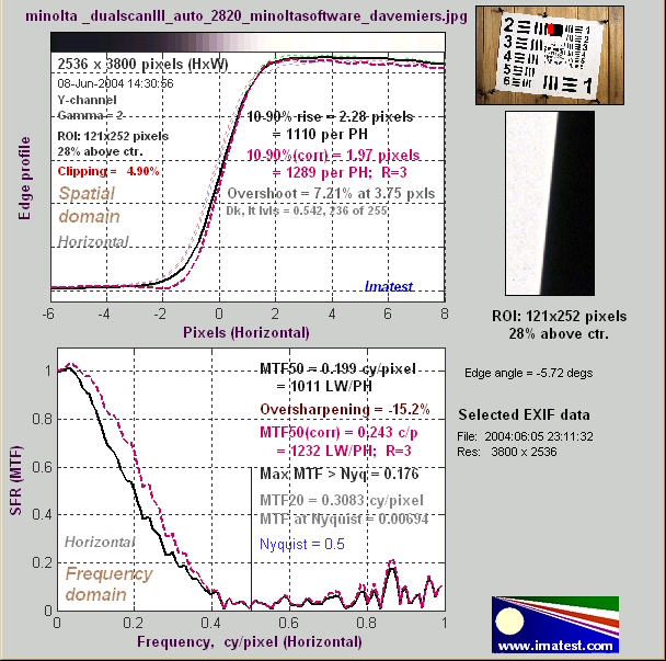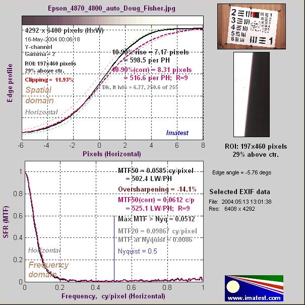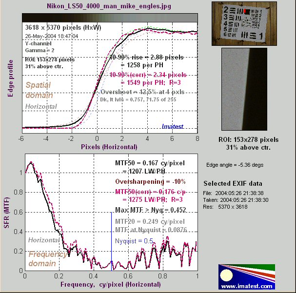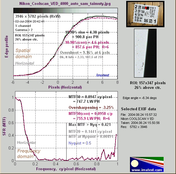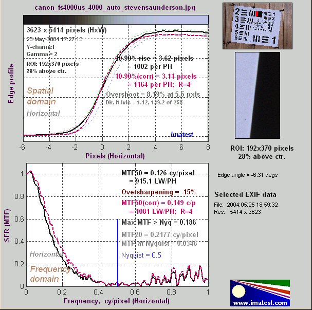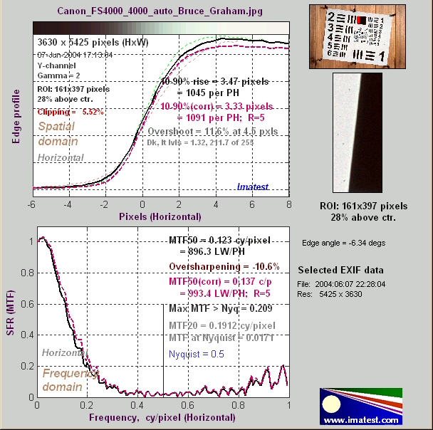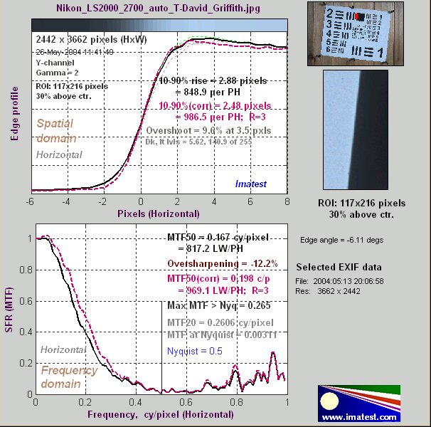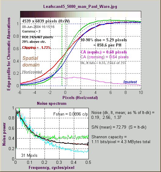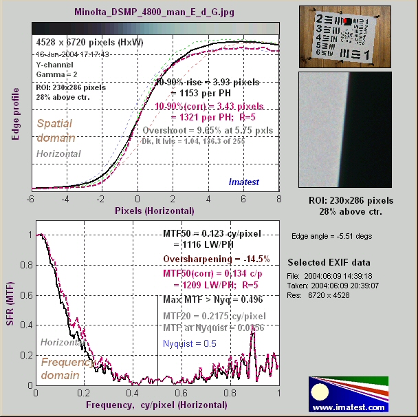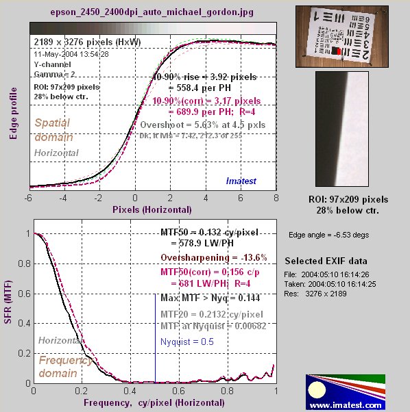 Note: The apparent sharper image is due to a larger target coming from a reflective scan. MTF values are accurate.