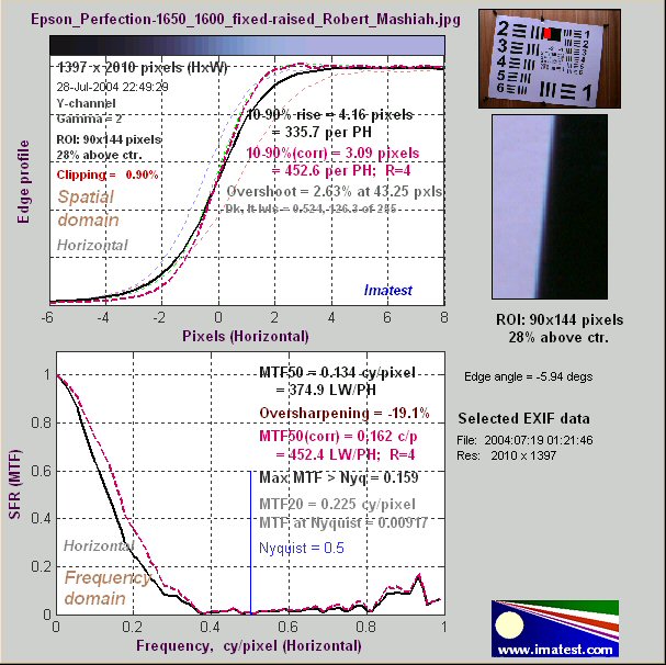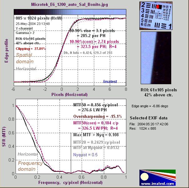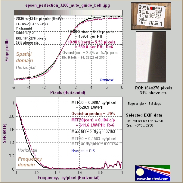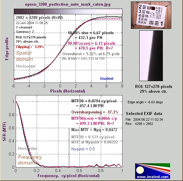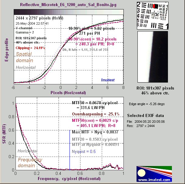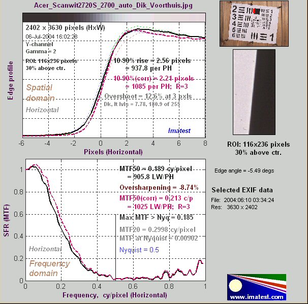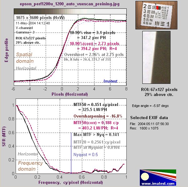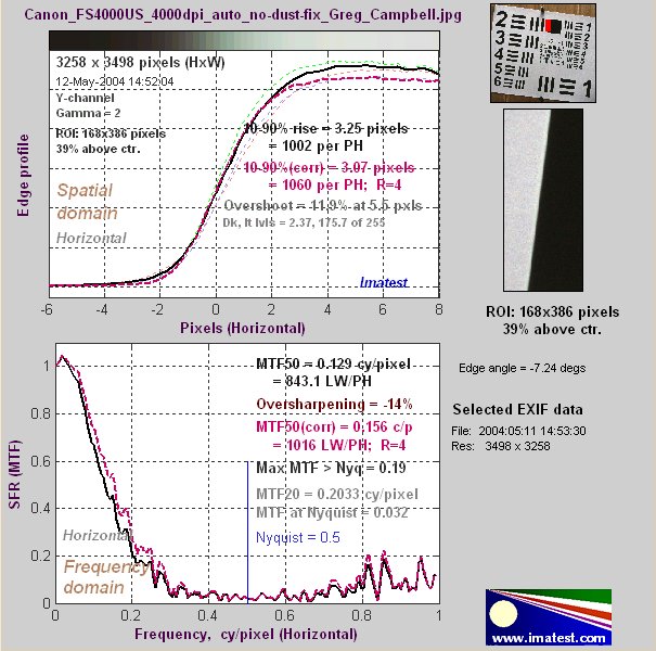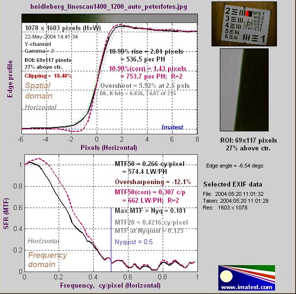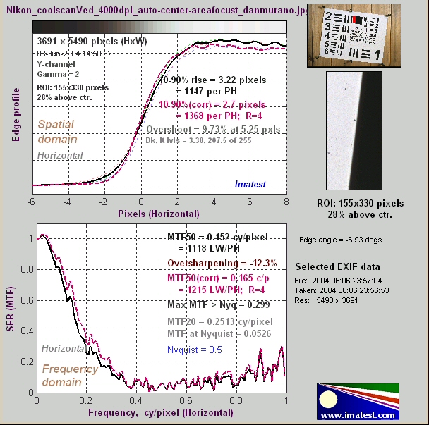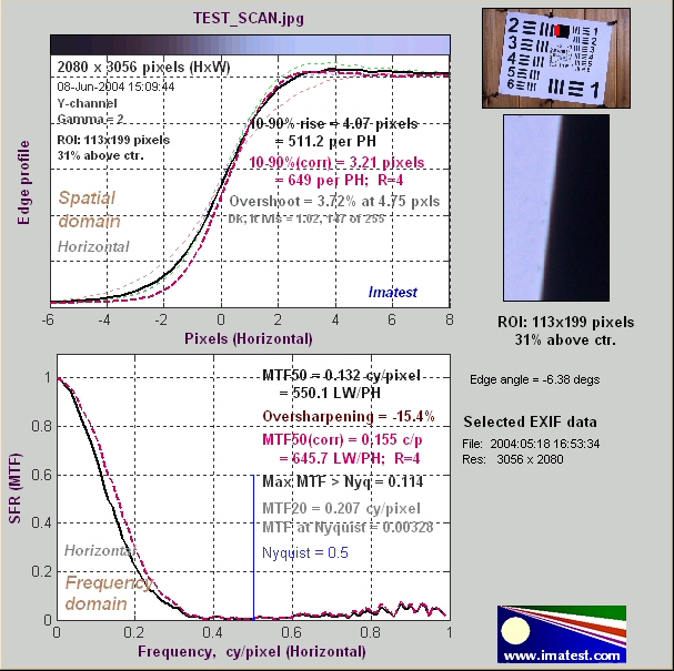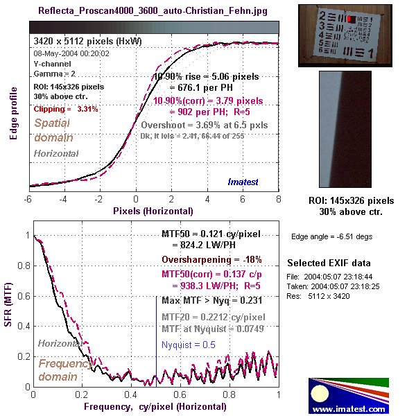 Note: The apparent sharper image is due to a larger target coming from a reflective scan. MTF values are accurate.