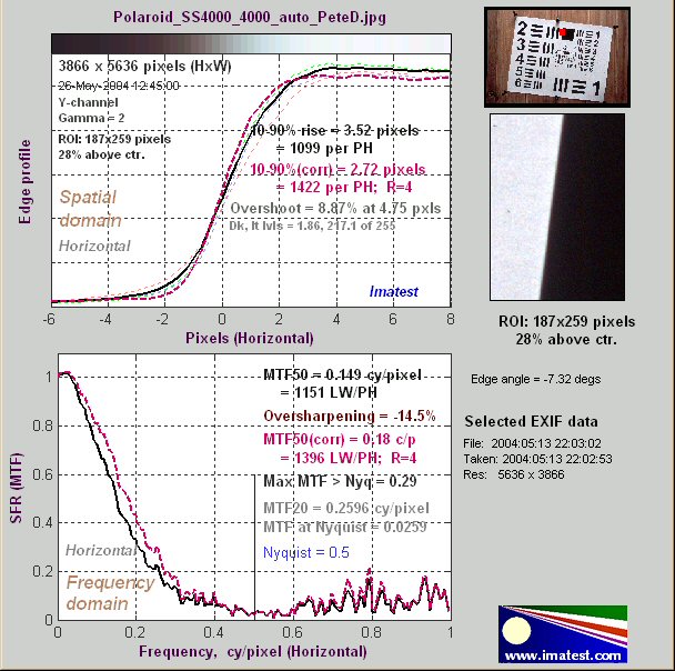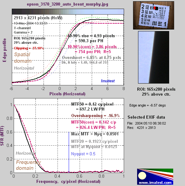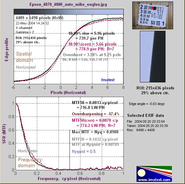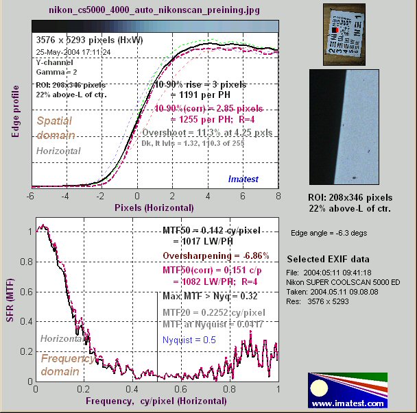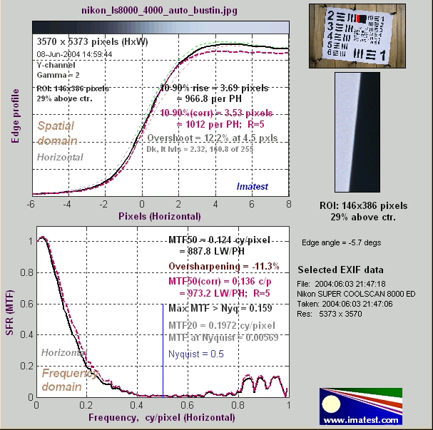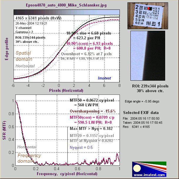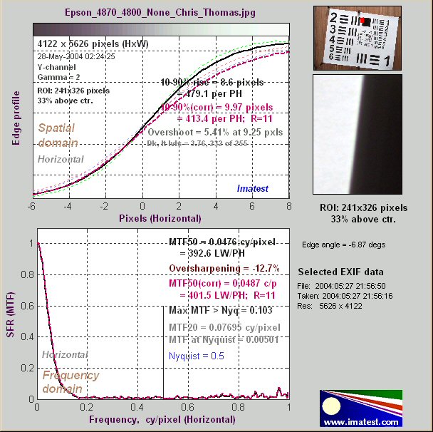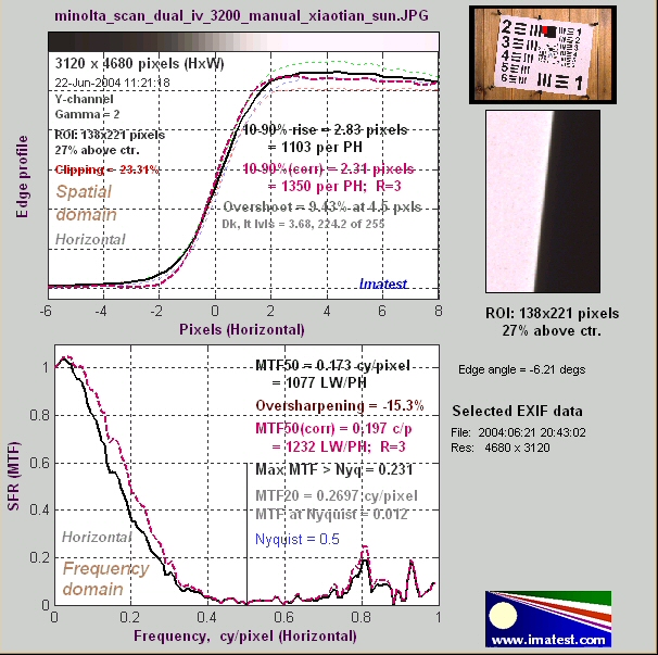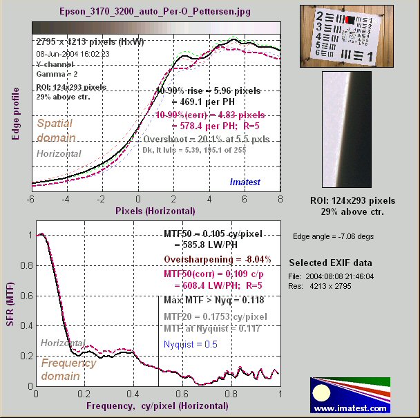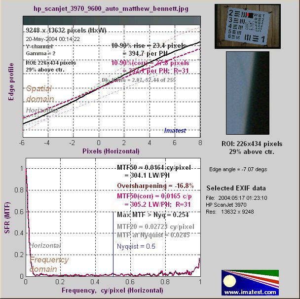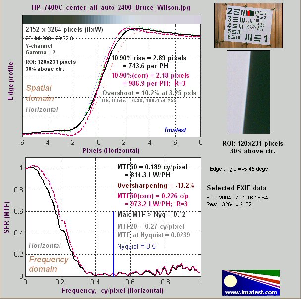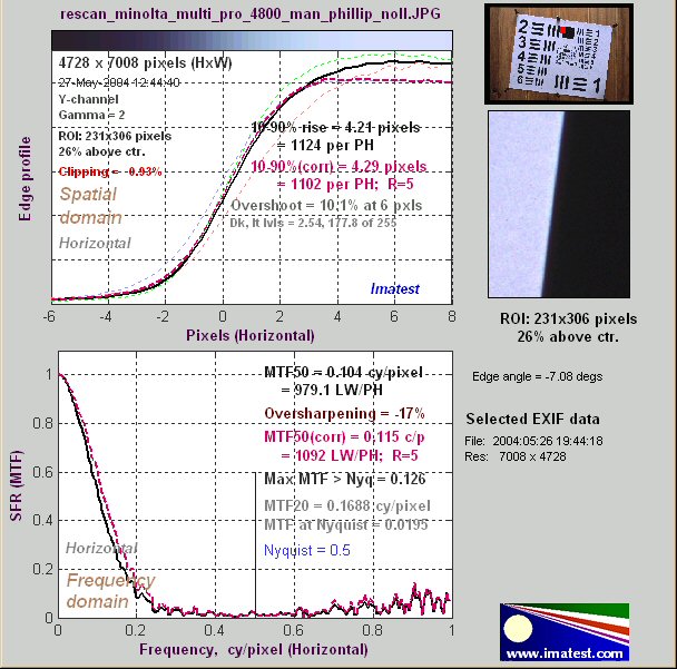 Note: The apparent sharper image is due to a larger target coming from a reflective scan. MTF values are accurate.