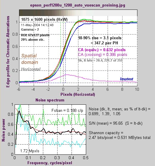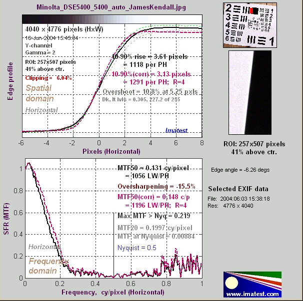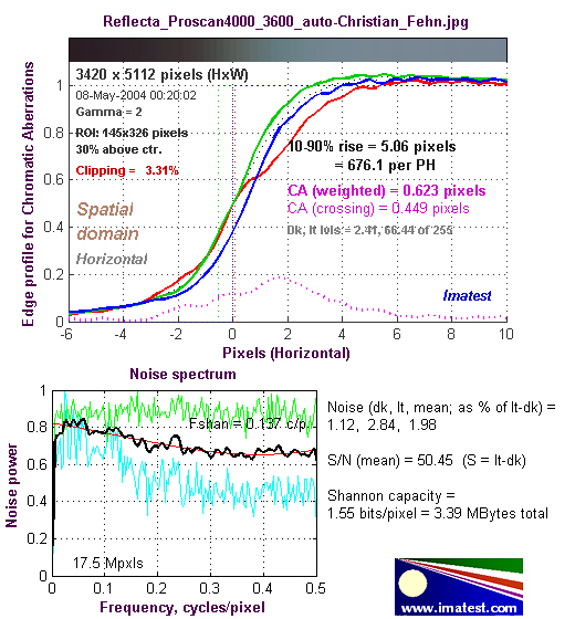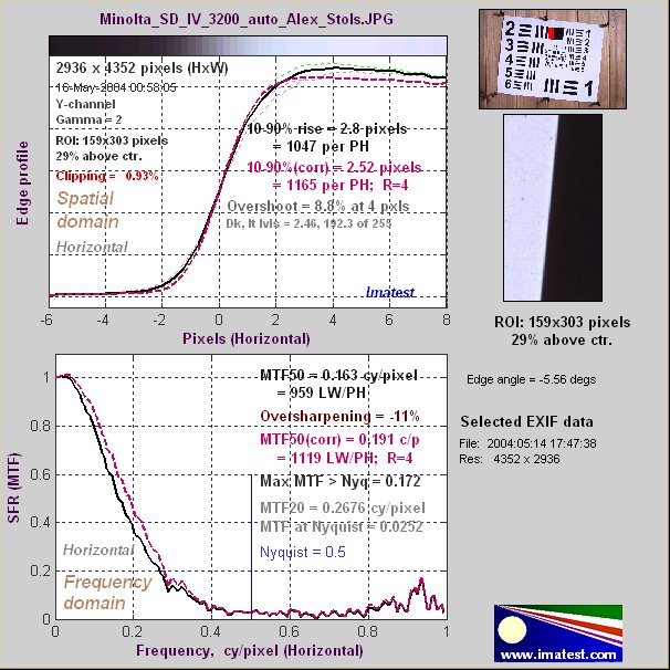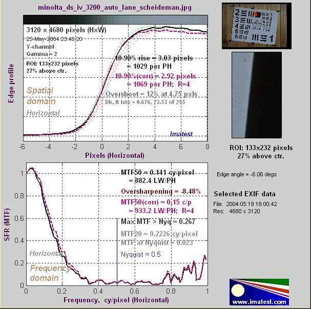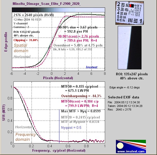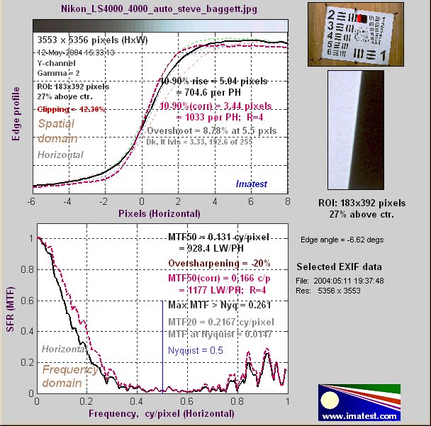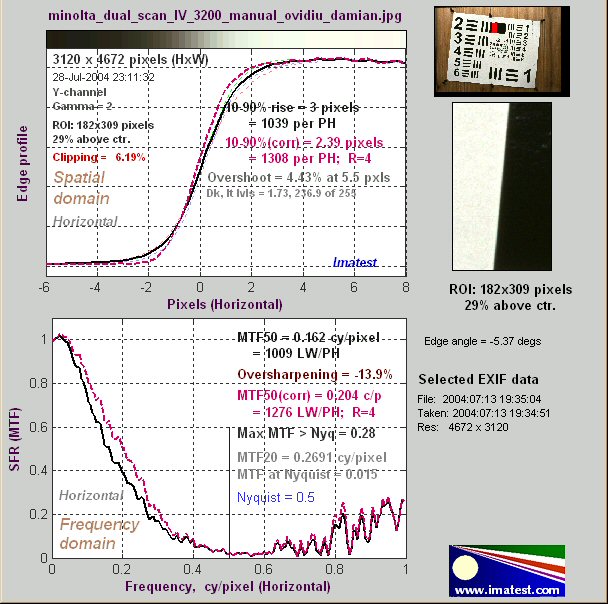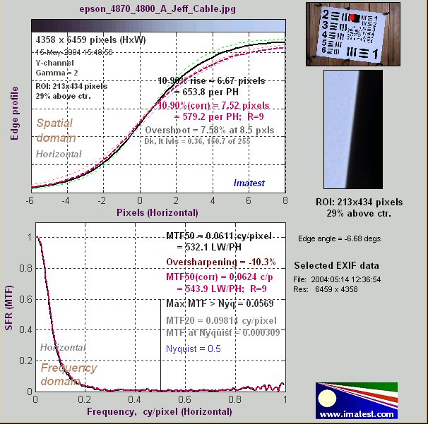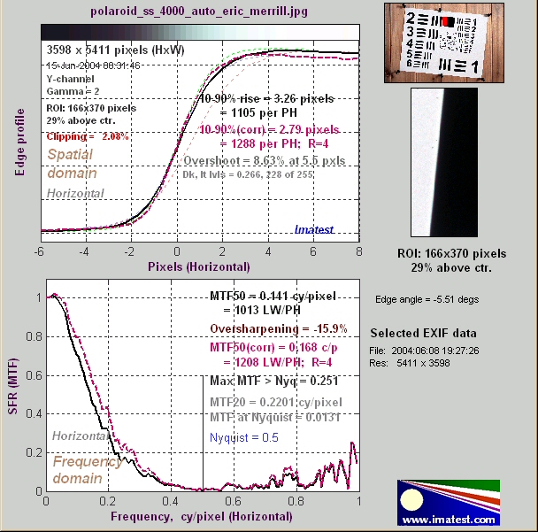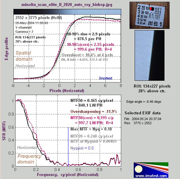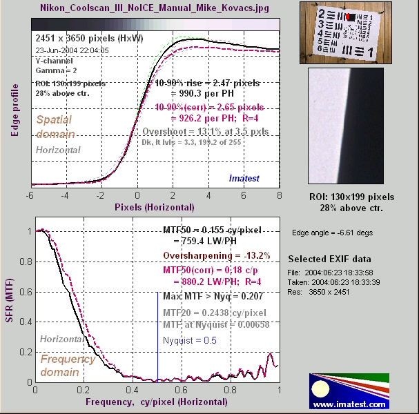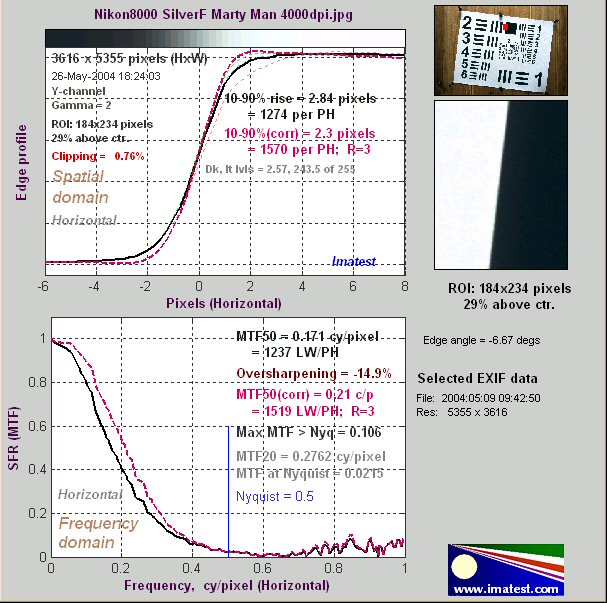 Note: The apparent sharper image is due to a larger target coming from a reflective scan. MTF values are accurate.