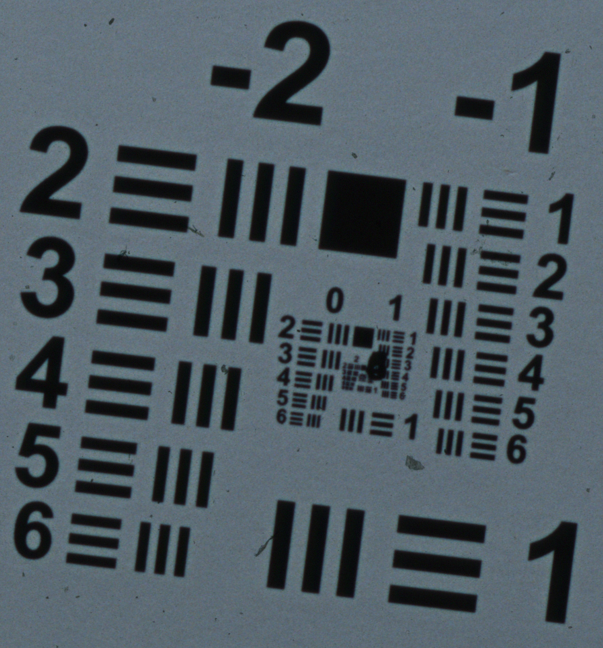 Using these numbers, I make the limiting resolution about Group 6, Pattern 3, or 80 lp/mm with the hi-res slide, and Group 1 pattern 4 with your slide, or 70 lp/mm using this scanner. Because the 80 lp/mm is getting dangerously close to the Nyquist limit of the scanner (106 lp/mm) I think the 50% MTF resolution may show a larger difference. A lot depends on the MTF of the film, processing, and the lens you used, of course.