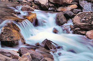 So the setup goes as follows: find a nice composition of your water subject, which doesn't have to be a full-frame of the entire waterfall, as sometimes just a small portion of it is all you need for an effective and beautiful shot. And, it doesn't have to be an actual full-blown waterfall - any water moving over rocks and such still come out beautiful with this technique. Set your tripod at it's lowest possible height for stability, and if it's windy, hang your camera bag off it to add weight. The f-stop should be set for maximum depth of field, not only to maintain focus across the entire image, but also to minimize the amount of light entering your camera - remember, we're looking for a long exposure. A setting of f-22 may cause a slight bit of blurriness due to light fringing. Photons actually bend a slight bit around sharp edges (i.e. your camera's aperture blades), so you'll need to experiment. Perhaps f-13 or f-19 will best suit your lens. Adjust the polarizing filter to eliminate as much reflection as possible, then take a reading of the subject with your camera in aperture priority, noting the shutter speed. If it's too fast, then you will want to either stop down the aperture, and/or add a neutral density filter or two. I carry a one-stop as well as a two-stop, so not only do I have the choice of a one or two stop reduction in light, but if I stack them, I can get three stops of light reduction which is great for those really long exposures. So, you've composed your image, and found the right combination of f-stop and filters to achieve the ideal shutter speed. There are two techniques for firing the shutter. If you keep the camera in aperture priority, and move your face away from the camera to trip the shutter with your remote cable, your exposure will be incorrect. Light entering the eyepiece affects the in-camera metering, so either keep your eye in the eyepiece, or cover it with your hand when firing the shutter. The other method it to note the shutter speed when composing, put the camera into manual mode, and set the shutter to that metered value. You can then back off from the camera and trip the shutter with no worries about the camera changing any settings on you. If you happen to have forgotten your remote cable at home (which I've done more than once), just use the camera's timer feature. That way, you're not jiggling the camera when the shutter fires. A quick word about image stabilizing technology: whether it's in the camera or in your lens, turn it off unless the manufacturer says it's designed to be activated while on a tripod. Some even sense when they're on a tripod, and dampen mirror slap, such as Canon's 70-200 f2.8L IS USM lens. Otherwise, leaving it on actually will blur your image. So, experiment with your settings. Play with longer and shorter shutter speeds, under and over exposing, etc. You will then get a good feel for your camera's capabilities, which leads to more beautiful pictures to add to your collection. Although this is a technique used to create many images you see in coffee table books, etc, it's still a satisfying experience creating your very own! Enjoy!
