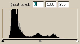 Image - Adjustments - Levels. Do this before moving on to the next step. Sometimes the darker portion of my images have specs of varying lighter colors, known as digital noise, creating an unpleasant effect when I sharpen the image. Moving the left hand slider of the input level will fill in the darker portions without affecting the lighter regions of the image. Noise reduction software is also worth looking at, the most popular being Noise Ninja.